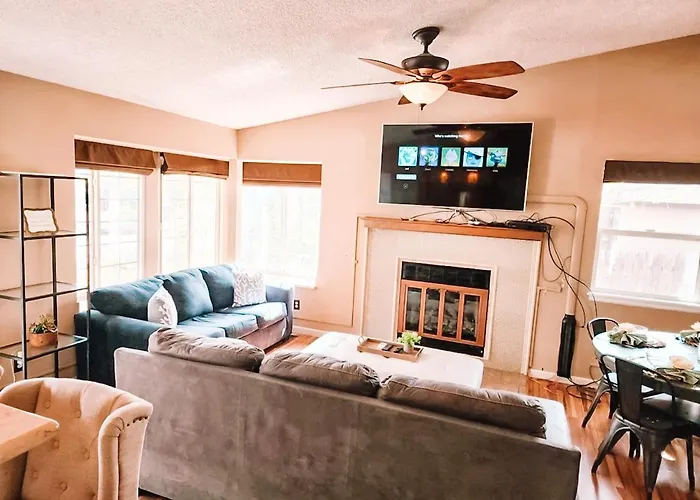De villa biedt een ingerichte keuken, evenals een eethoek buiten om te koken en te dineren. Er zijn ook koffie- en theevoorzieningen, een koelkast, een oven om uw eigen maaltijd te bereiden. Mod Pizza ligt in de buurt van Pet Friendly 2 King Beds Af Academy Sleeps 12 Villa en nodigt gasten uit om Amerikaanse gerechten te proeven. De dichtstbijzijnde luchthaven is Colorado Springs Municipal, op 30 km afstand van deze villa.